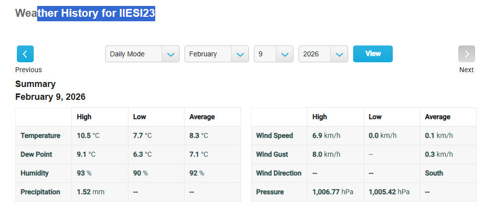 Meteo IIESI2 09 Febbraio 2026 ore 12: 19
